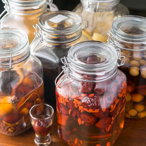 薬膳料理に最も合うお酒として なつめ庵が提案する焼酎漬け込み薬酒です。